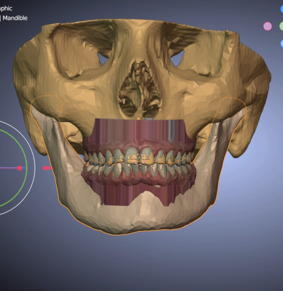 Se realiza la alineación de los modelos dentales digitales a la tomografía volumétrica, misma que es alineada al plano de Frankfurt.